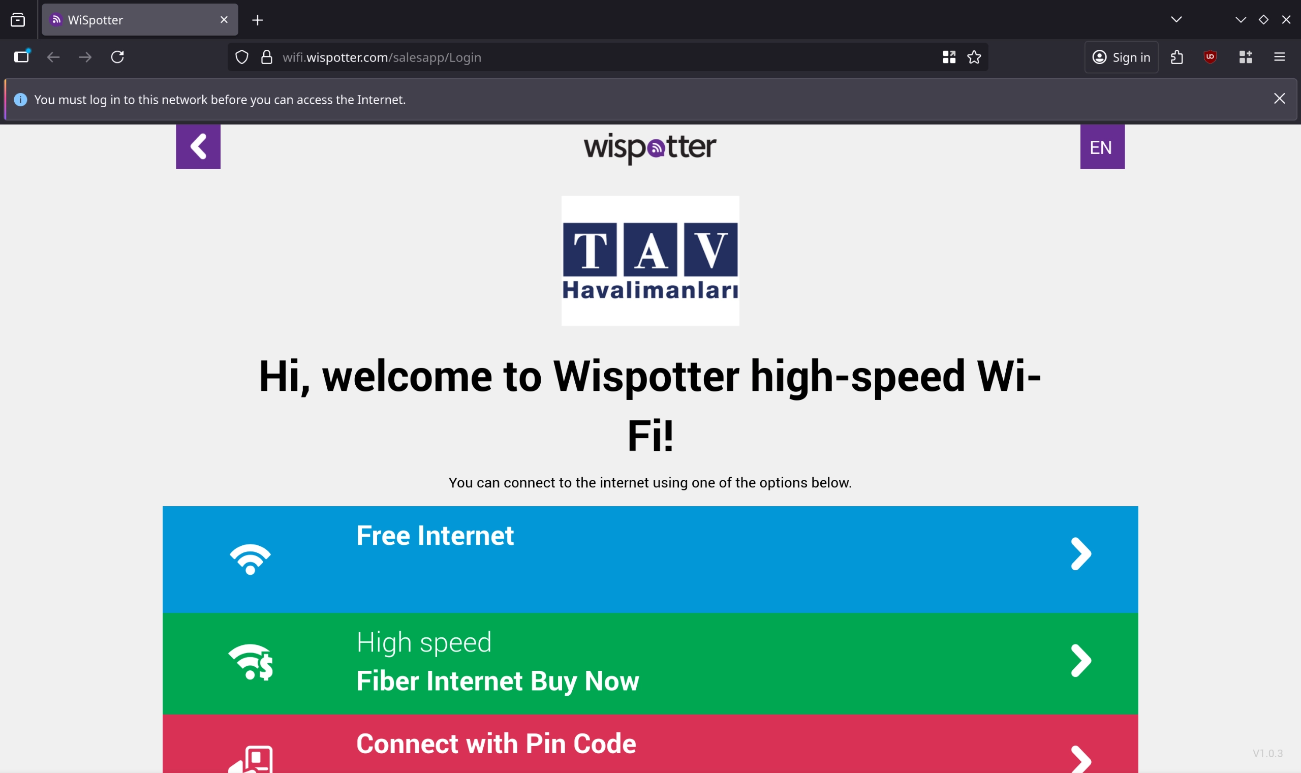 Otherwise you can pay or get free internet for 30 minutes after scanning your passport.